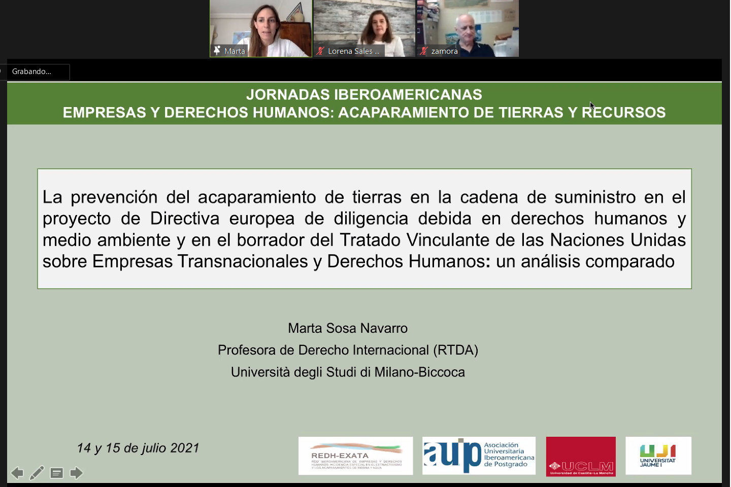 El COMITÉ ORGANIZADOR de las Jornadas Iberoamericanas sobre Empresas y Derechos Humanos: Acaparamiento de tierras y recursos se conformó por Francisco Javier Zamora Cabot, Lorena Sales Pallarés y Maria Chiara Marullo.